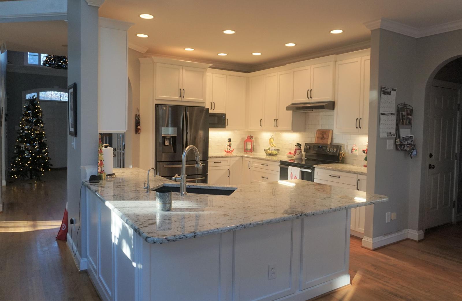A bright, classic kitchen featuring full-height cabinetry, granite countertops, and a functional peninsula designed for everyday living.