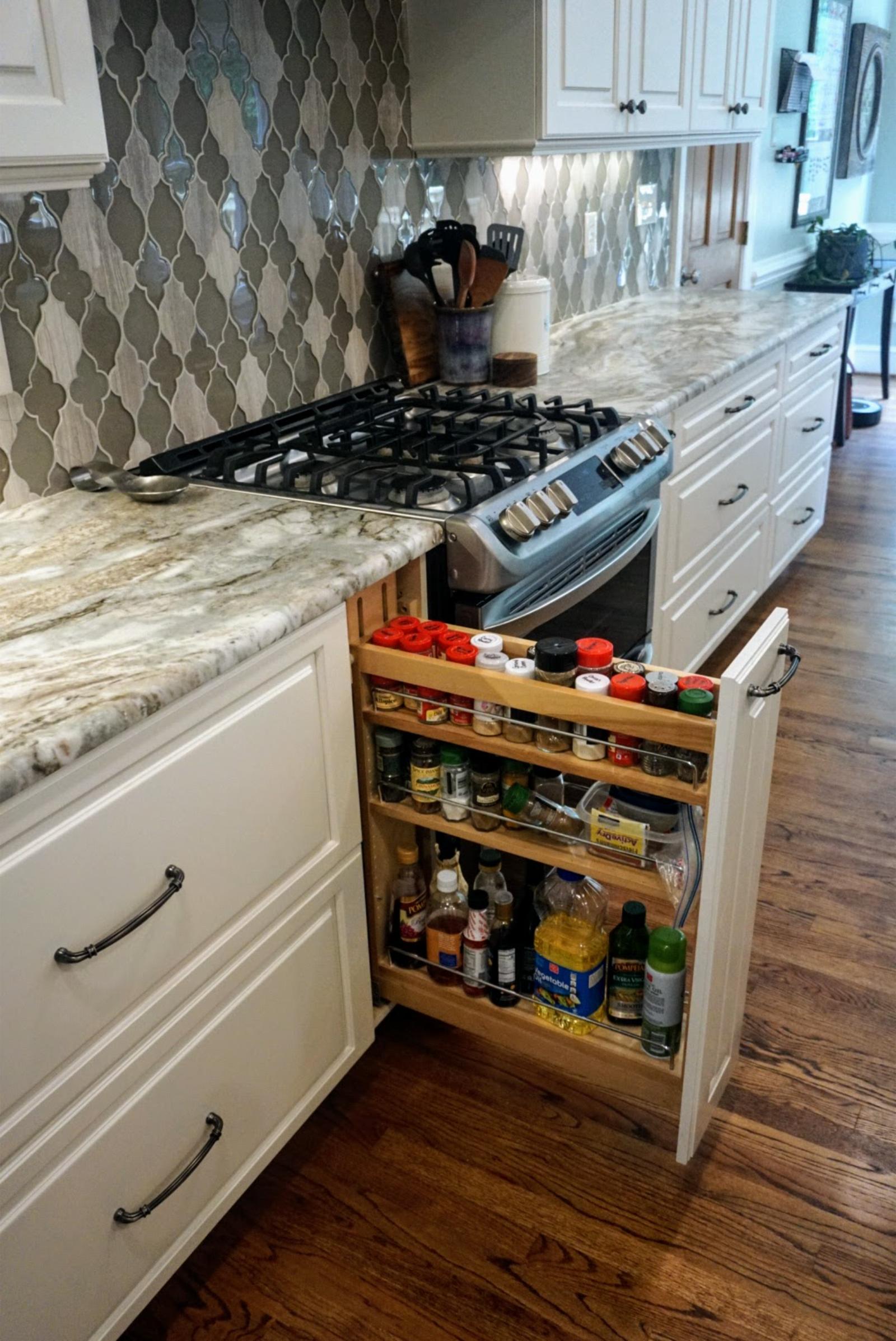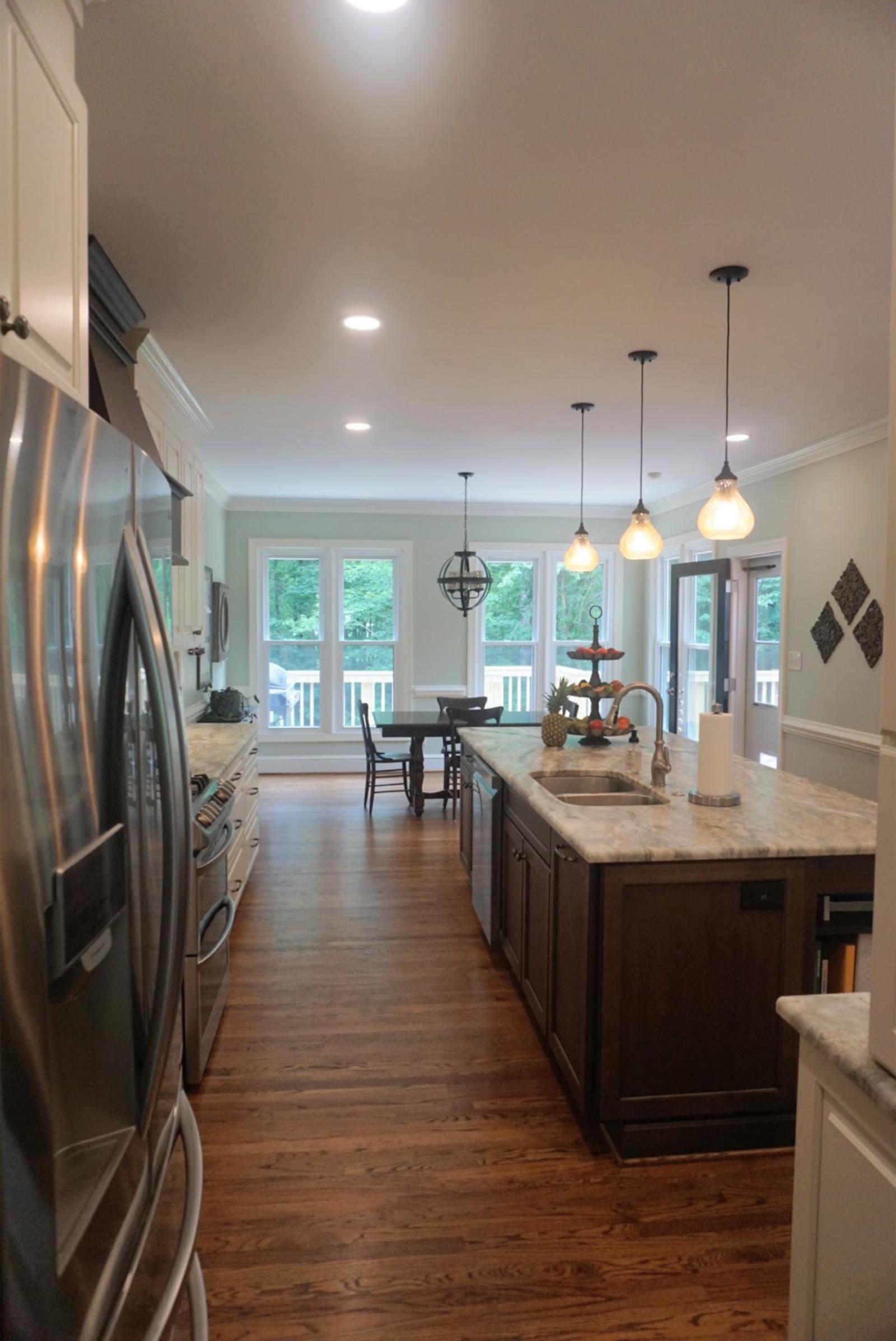 This kitchen blends clean white cabinetry with a warm wood island for a timeless, welcoming feel. A large island creates space for seating and everyday use, while custom details like the wood hood and patterned backsplash add character without overpowering the room. Designed to be both beautiful and practical for daily living.