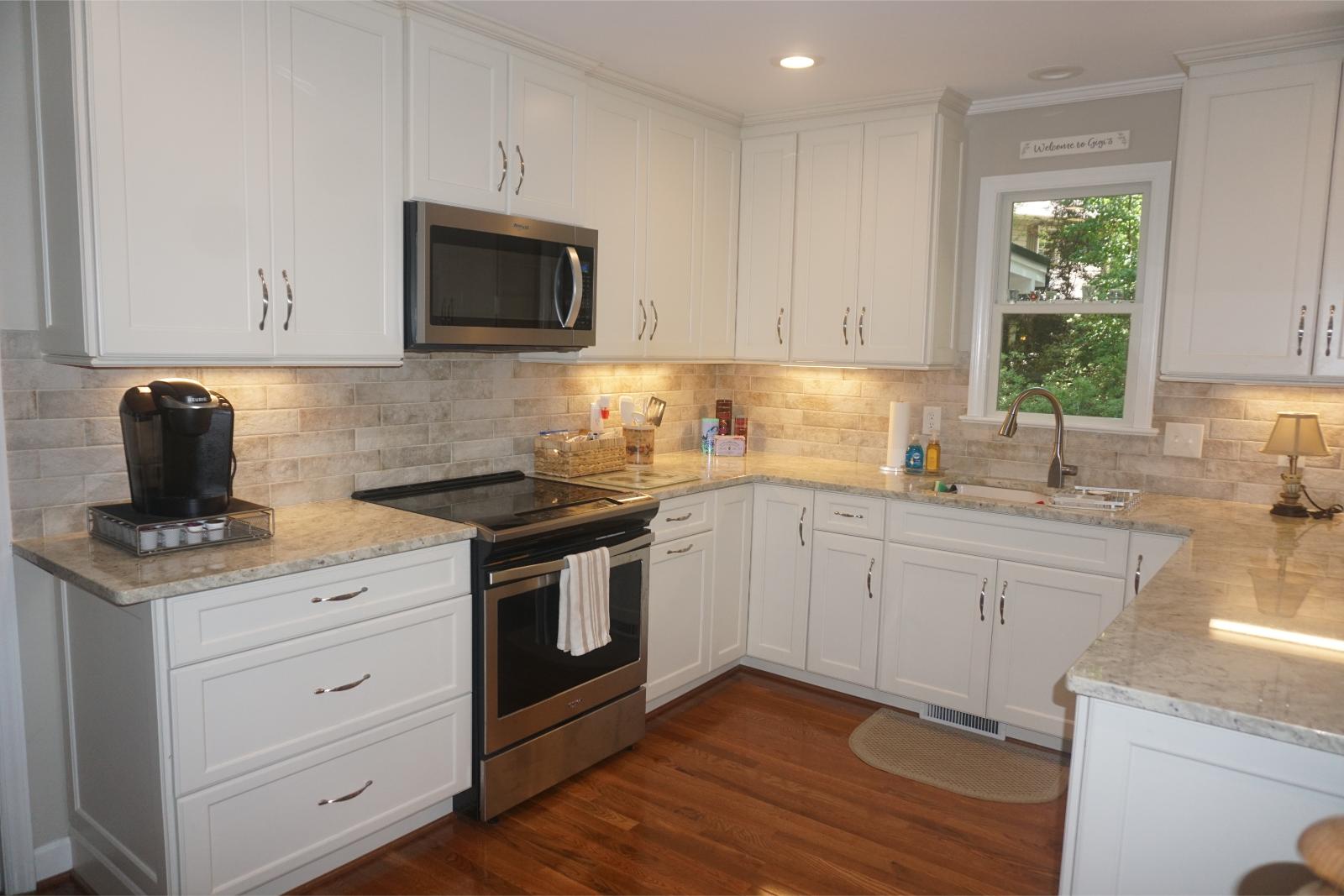 This classic white kitchen showcases fully custom cabinetry crafted for the space, with clean detailing, tailored storage, and meticulous installation that elevates both function and longevity.