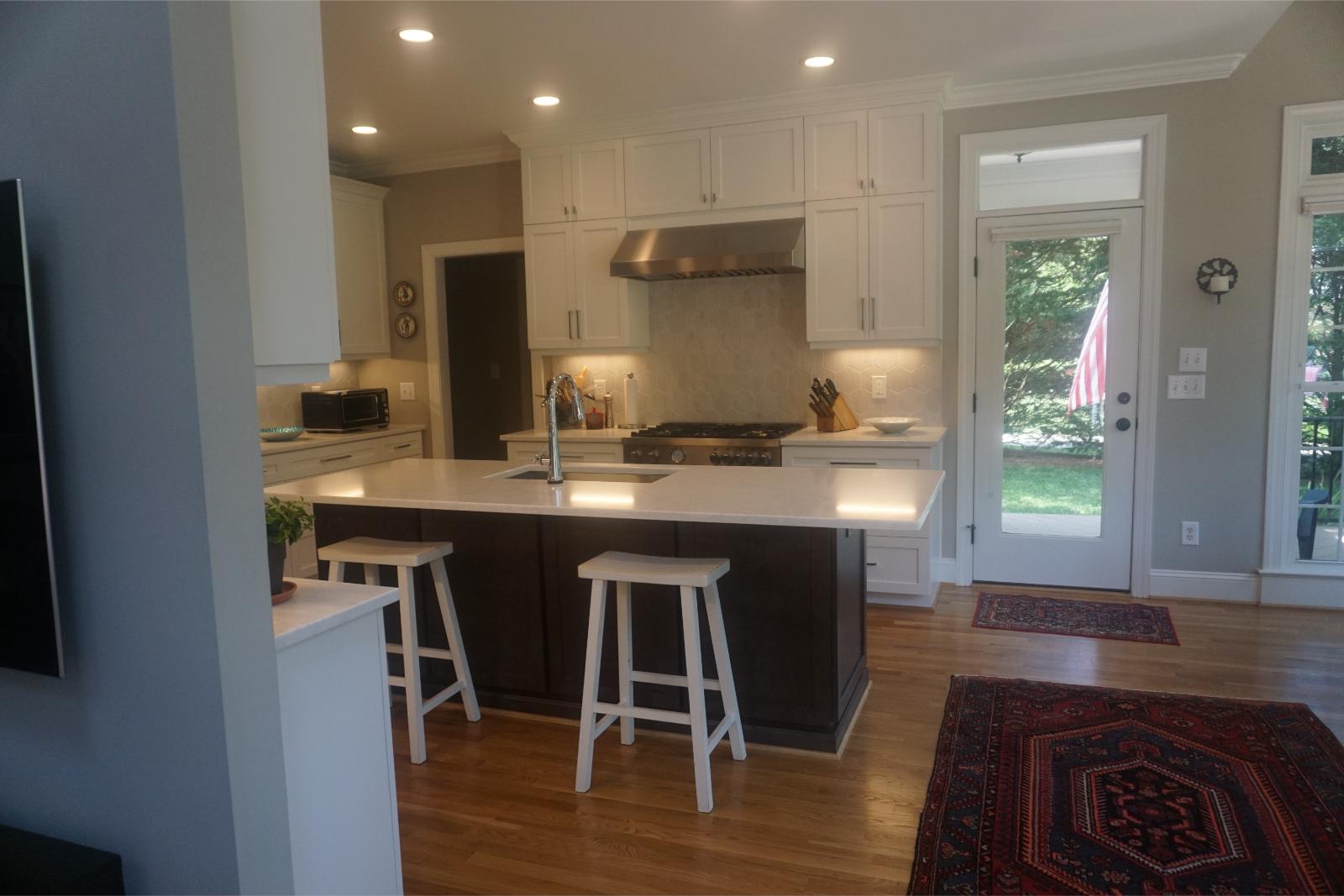 A light-filled kitchen designed around openness and flow. Custom cabinetry, a spacious island, and carefully chosen details create a space that feels timeless, functional, and quietly luxurious.